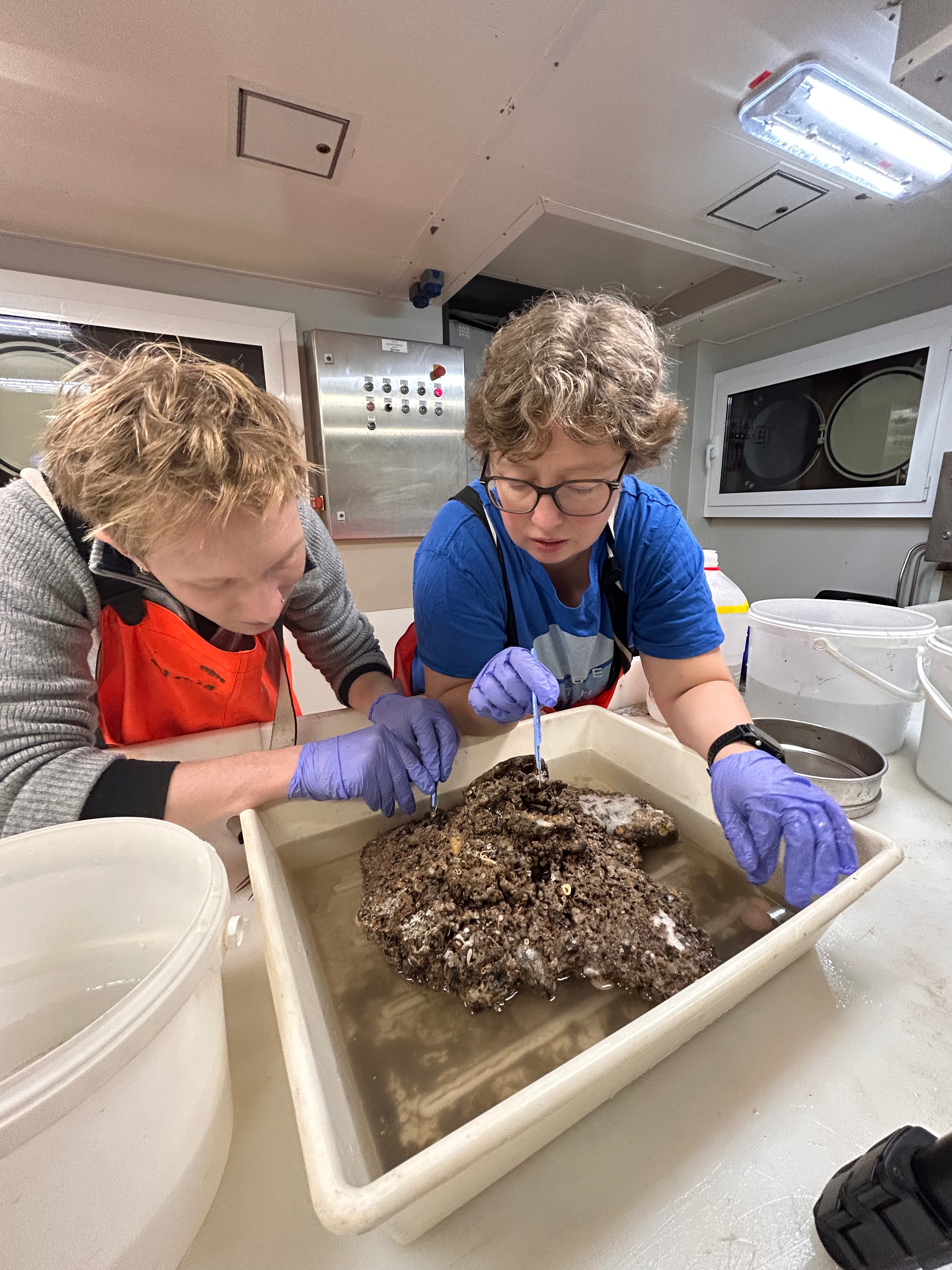 For the CBE Arctic team, this effort was driven by a key goal: to obtain deep-sea fauna for taxonomic, genetic, and ecological studies. These samples will help uncover how species adapt to extreme environments and how communities are connected across ocean basins. Sample processing on board is messy and a lot of work, but in good company and with many helpers we got the job done!